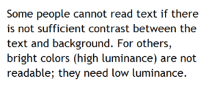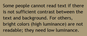 This page covers just a few accessibility issues. There are other accessibility issues not covered in these easy checks, for example: links, data table markup, reliance on color, and much more.